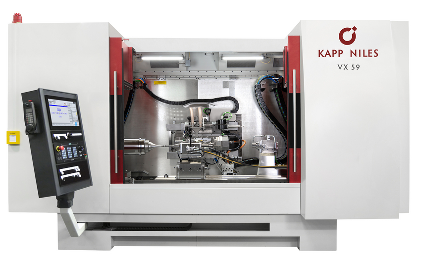 Auf VX-Maschinen können ein oder zwei auswechselbare Schleifspindeln eingesetzt und bis zu sechs Schleifwerkzeuge gleichzeitig genutzt werden. So ist es zum Beispiel möglich, mehrere Verzahnungen in einer einzigen Aufspannung zu bearbeiten. Darüber hinaus lassen sich auf den selben Schnittstellen Zusatzschleifköpfe für Schleifarme zum Bearbeiten von Innenverzahnungen anbringen. Dabei können sowohl abrichtbare als auch abrichtfreie CBN-Schrupp- und Schlichtwerkzeuge von KAPP NILES genutzt werden. Mit dem optionalen Nullpunktspannsystem können die Rüstzeiten der Schleifspindeln und Zusatzschleifköpfe auf rund 85 Prozent der ursprünglichen Dauer verkürzt werden.