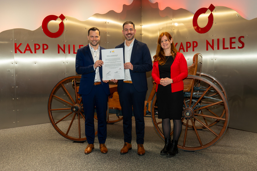 Der Coburger Maschinenbauer KAPP NILES tritt dem Bündnis "Coburg - Die Familienstadt" bei. Das familiengeführte Unternehmen setzt damit ein Zeichen für die Vereinbarkeit von Beruf und Privatleben. Am Freitag überreichten Can Aydin, 3. Bürgermeister der Stadt Coburg, sowie Bianca Haischberger, Leiterin der Stabsstelle Demografie, Bildung & Familie, die Urkunde und hieß das Unternehmen offiziell im Kreis der Bündnispartner willkommen.