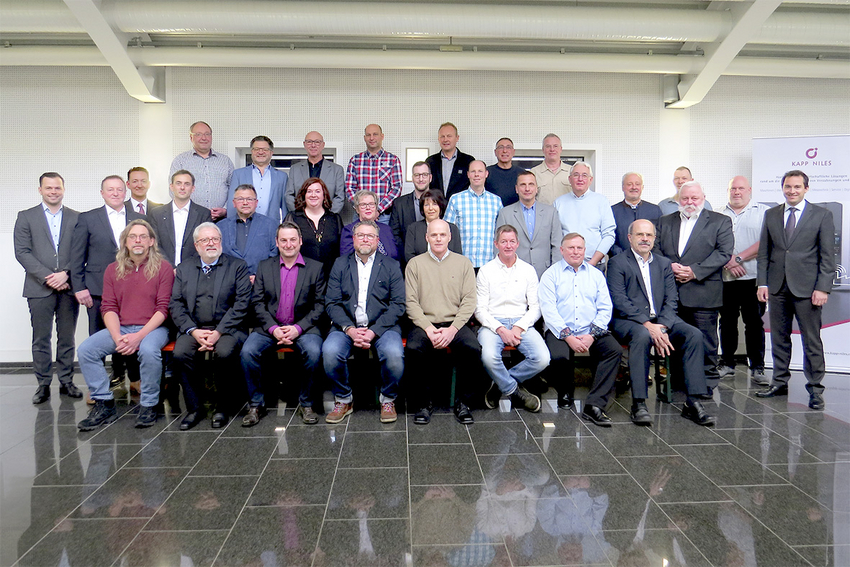 The three managing directors then highlighted the professional careers of the honorees, thanked them personally for their commitment and presented them with anniversary medals for many years of service from the Kuratorium der Bayerischen Wirtschaft e. V., certificates of honor from the Free State of Bavaria, honorary pins from KAPP NILES, wine gifts and flowers.